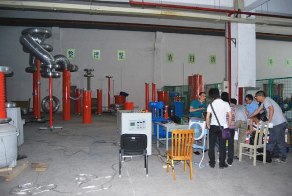 2013年6月3日至6日,中铁十七局电气化公司安哥拉项目经理部一行15人,在苏州华电电气股份有限公司进行了其MB项目批量配套高压试验设备的 工厂验收及技术培训。苏州华电总工郭守贤、电气试验部部长陈赟伟等进行了详细的理论知识介绍和设备操作培训指导,还介绍交流了苏州华电近年来在国外现场试 验的经验和情况。通过充分沟通,客户了解了公司的生产工艺及售后服务体系。公司近年来的发展和变化给他们留下了深刻的印象。