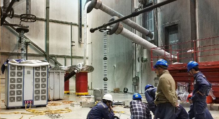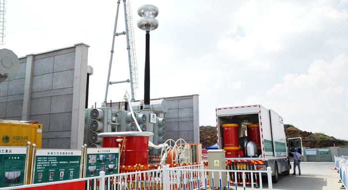 - 2015年10月,江苏电力科学研究院定制一车一箱主变感应耐压及局部放电试验设备在1000kV泰州站试验